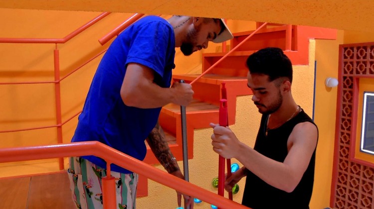 Depois de começar a varrer a sala da casa do Big Brother Brasil, na tarde desta segunda-feira (3), João Gabriel ganhou a companhia do irmão gêmeo, João Pedro, na tarefa.